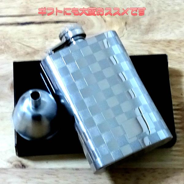 ステンレス ウイスキーボトル ニューチェッカー チェック シルバー ブランデー ウォッカ ウィスキー キャンプ アウトドア おしゃれ ギフト