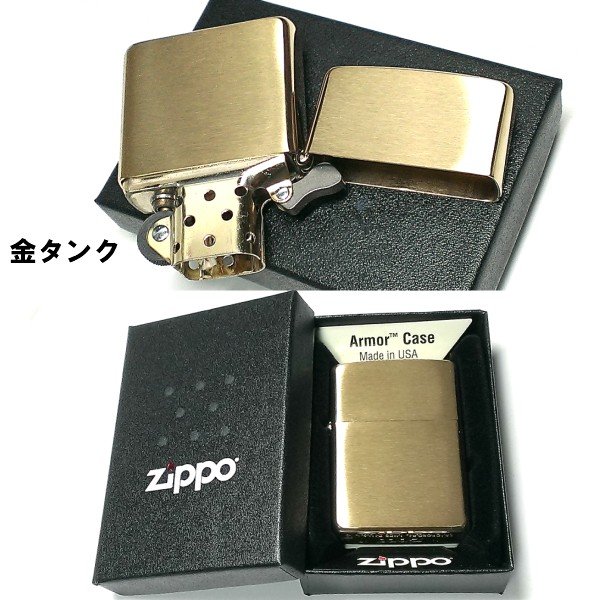 ZIPPO アーマー ジッポ ライター ゴールドサテン ブラス シンプル 無地 金タンク 重厚モデル かっこいい メンズ プレゼント ギフト
