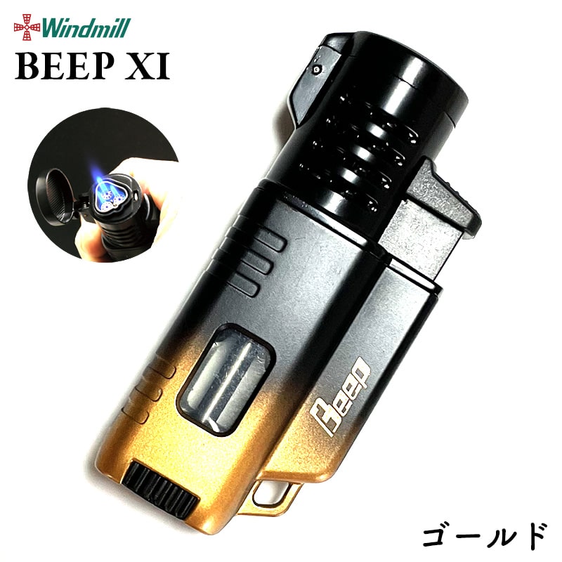 ガスライター BEEP11 ターボライター ビープ11 ジェットフレーム ゴールド 強力パワー ガス注入式 ダイヤル式火力調節