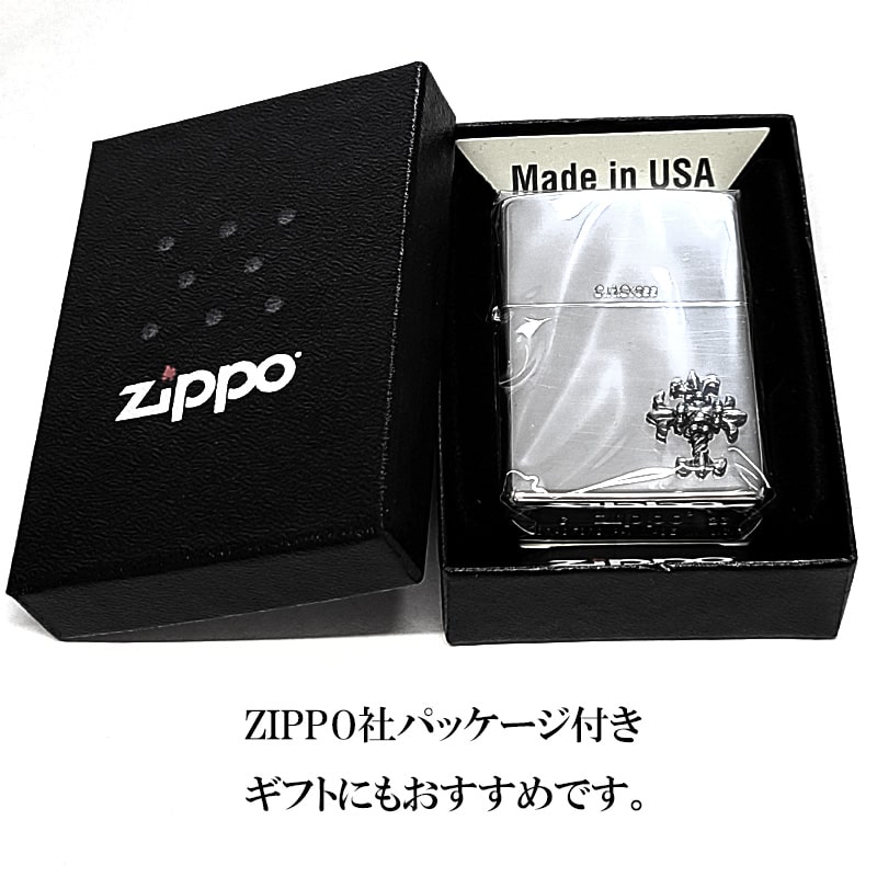 ZIPPO 限定 クロスメタル ジッポ ライター かっこいい 十字架 シリアルナンバー入り おしゃれ シンプル シルバー 鏡面 彫刻