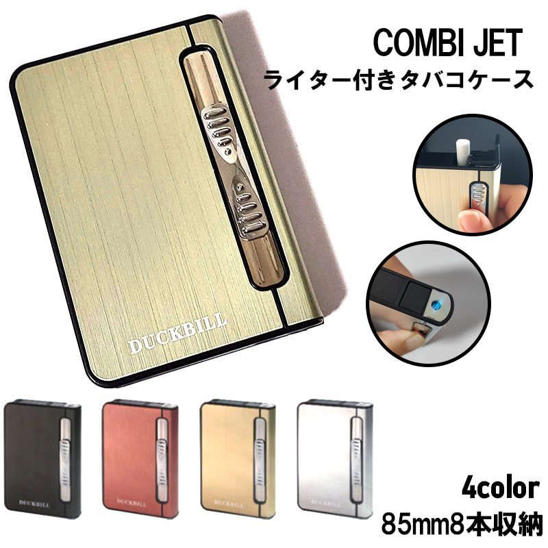 シガレットケース スライドアップ式 ガスライター付き 選べる タバコケース ブラック レッド ゴールド シルバー ハード ケース 喫煙具 たばこ レディース ギフト