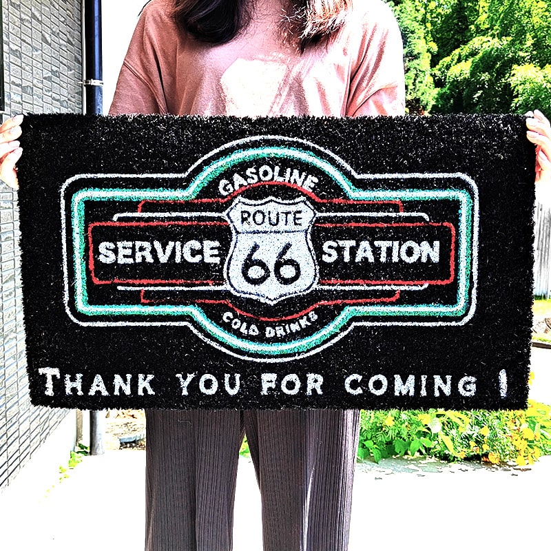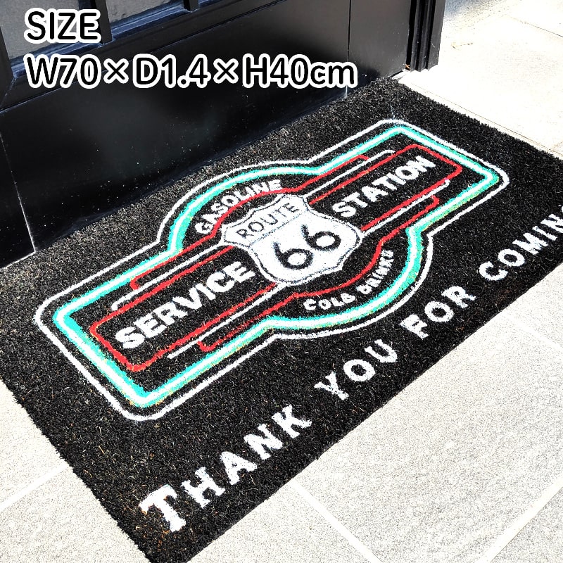 玄関マット 敷物 ROUTE66 おしゃれ コイヤー かっこいい 大きい ルート66 バルコニー SERVICE STATION 泥落とし ナチュラル