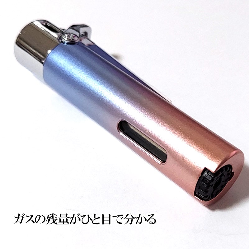 ガスライター シリンダージェット ガス注入式 3カラー かわいい グラデーション ターボライター おしゃれ 女性 コンパクト ガス視認窓付き