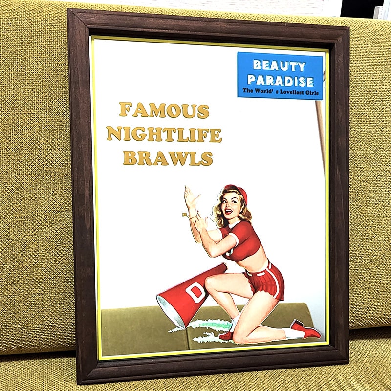 パブミラー かわいい 木製 壁掛け 鏡 アンティーク チアリーダー ミラー レトロ 女性 Cheerleader インテリア 壁飾り アメリカン 雑貨
