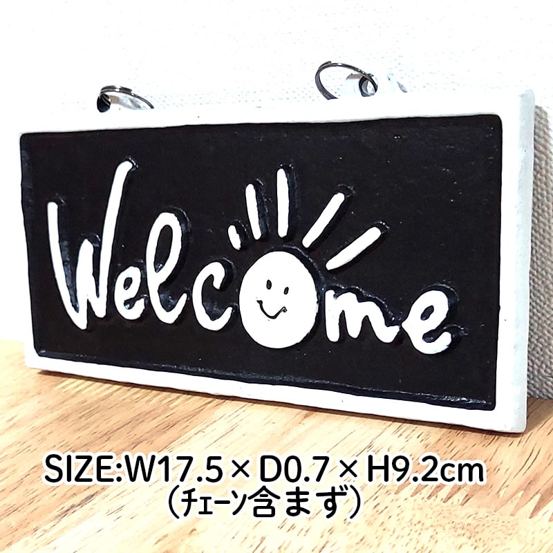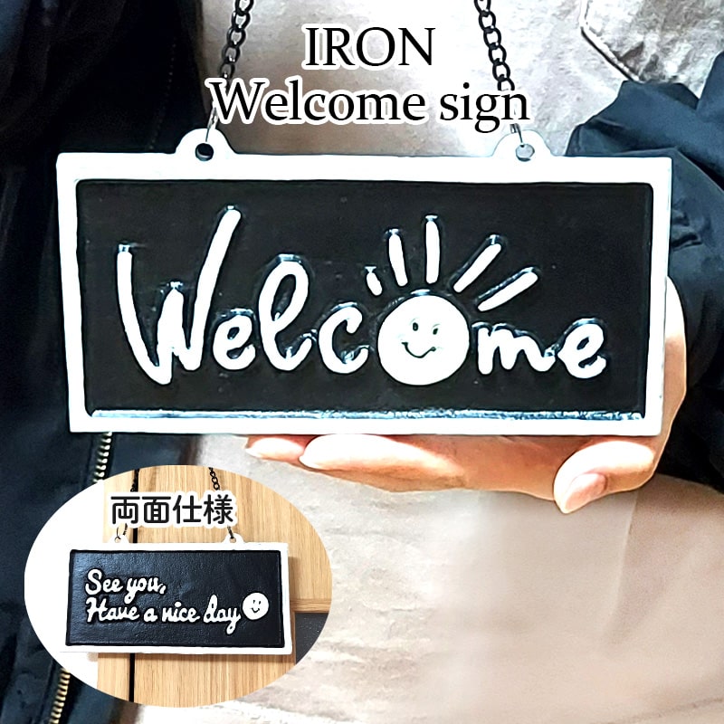 看板 アイアン WELCOME プレート スマイル 両面 吊り下げ 可愛い SMILE ブラック ウェルカム アンティーク おしゃれ 鉄製 アメリカン