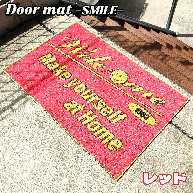 ドアマット スマイル 玄関 屋内 屋外 兼用 インテリア アメリカン かわいい レッド 雑貨 リビング 可愛い アンティーク おしゃれ カフェ
