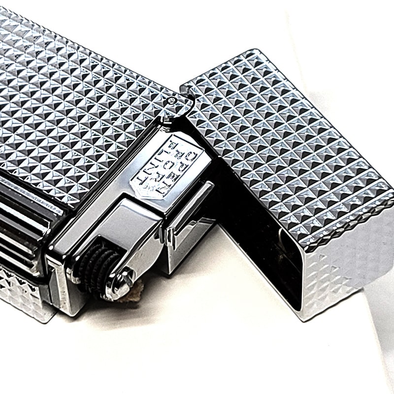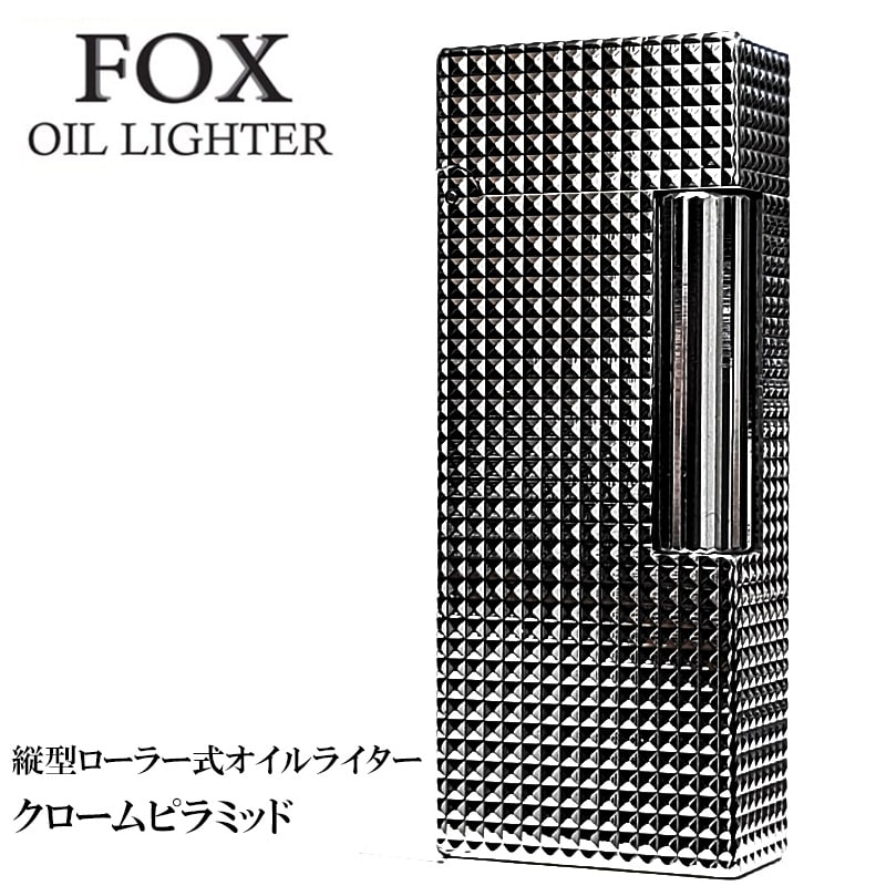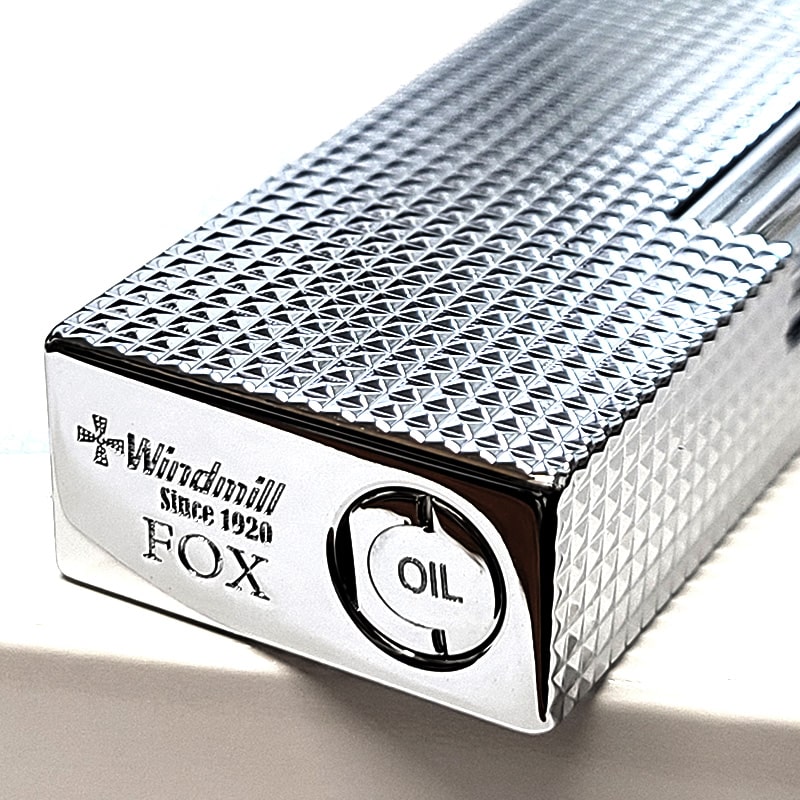 オイルライター FOX クロームピラミッド ダイヤカット彫刻 重厚 シルバー 真鍮 縦型ローラー式 おしゃれ 喫煙具 高級 ウインドミル