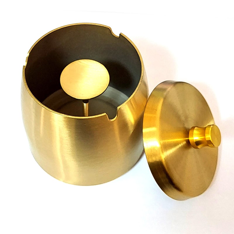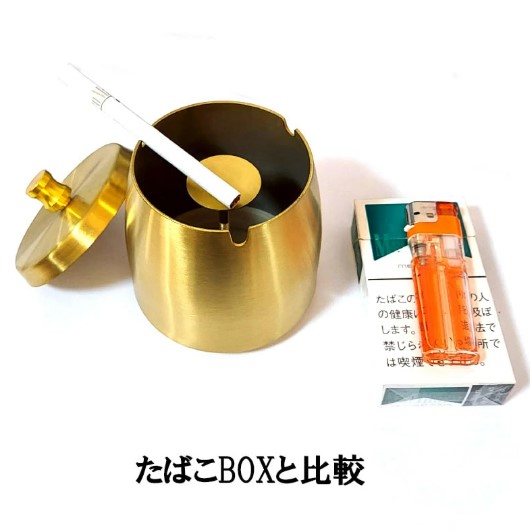 「蓋付きステンレス灰皿 ゴールド」