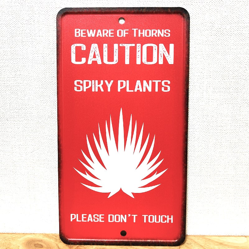 ブリキ看板 ガーデニング ガーデンサイン メッセージプレート サボテン 赤 CAUTION インテリア アメリカン かわいい レッド