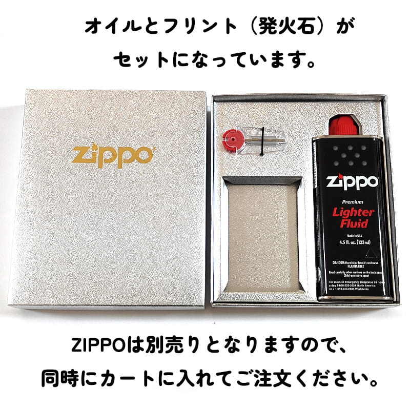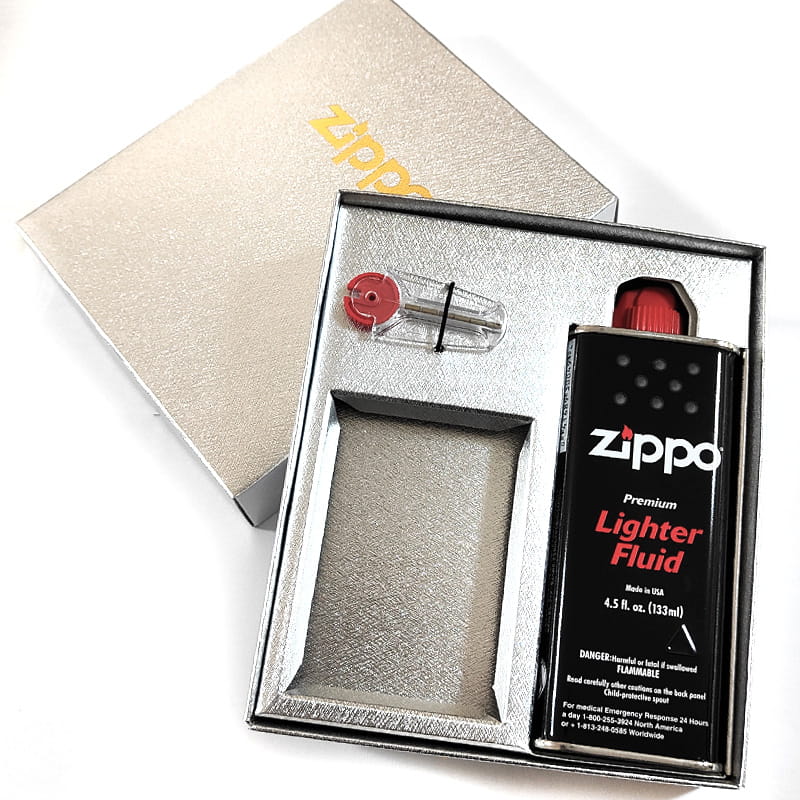 新品のZIPPOにはオイルが入っておりませんので、このセットをプレゼントすればすぐにお使いいただけるとても便利な仕様です。