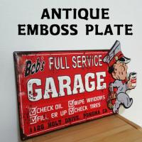 ブリキ看板 可愛い ビンテージ エンボス加工 BOB'S GARAGE ガレージ アメリカン 大型 プレート 壁飾り 雑貨 大きい インテリア