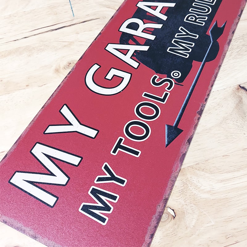 ガレージに飾りたくなるようなどこか懐かしいアメリカンテイストのブリキ看板です。