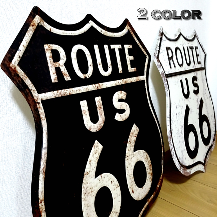 人気のROUTE66のロゴにおしゃれなダイカット型ブリキ看板になります。