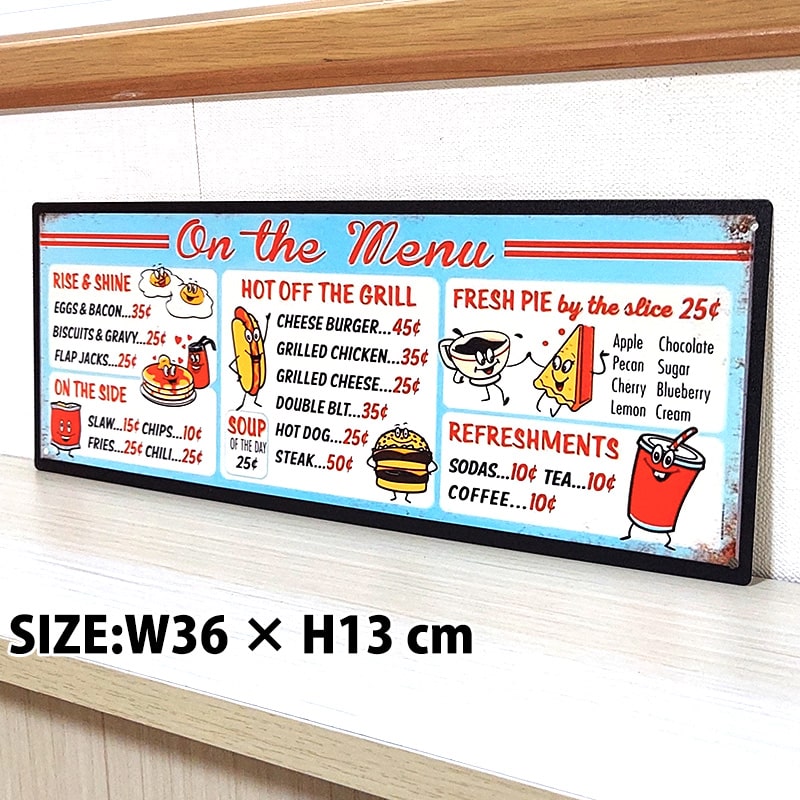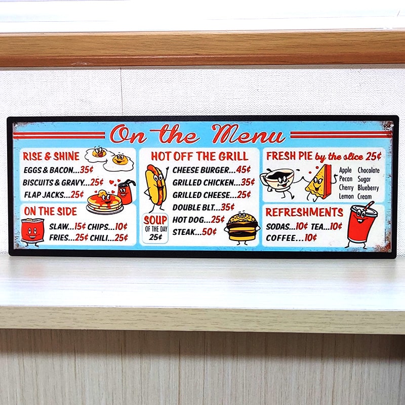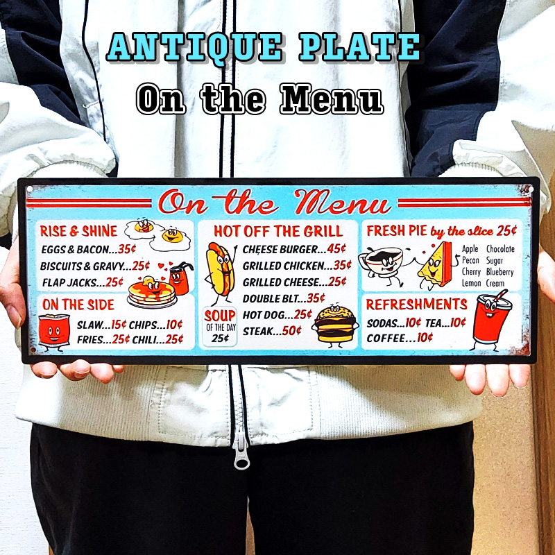 ブリキ看板 おしゃれ メニューボード On the Menu アンティークプレート アメリカン レトロ調 壁飾り 雑貨 インテリア