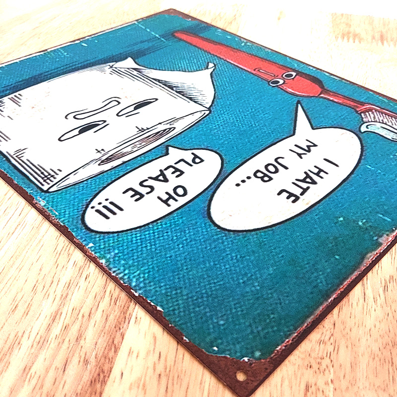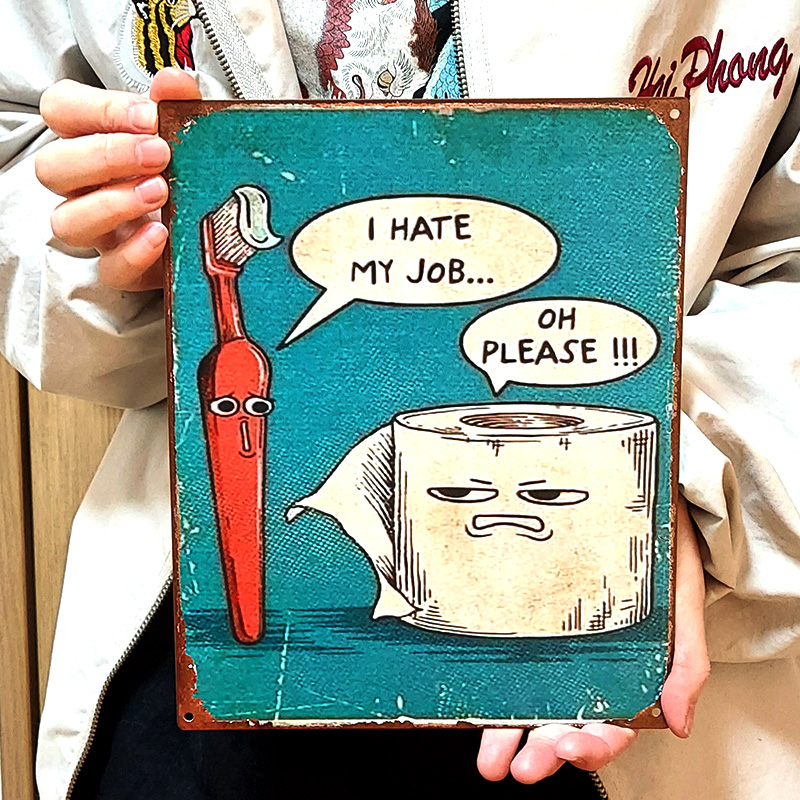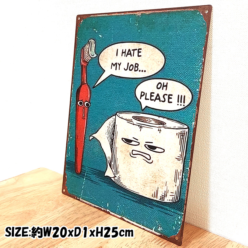 ブリキ看板 WE HATE OUR JOBS メタル アンティークプレート トイレ ヴィンテージ アメリカン 雑貨 歯ブラシ おしゃれ