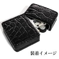 オイルライター革ケース 本クロコダイル 革サック ZIPPO対応 ブラック ジッポ ライターケース 皮 黒 メンズ プレゼント ギフト