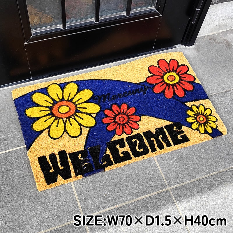 玄関マット 花柄 マーキュリー コイヤーマット WELCOME おしゃれ バルコニー 敷物 ドアマット 滑り止め加工 アメリカン MERCURY