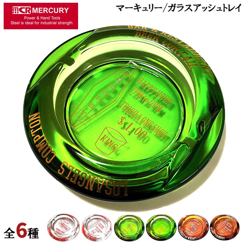 卓上灰皿 ガラス製 マーキュリー アメリカン 雑貨 選べる 6デザイン グリーン クリア アンバー 喫煙具 MERCURY 重厚 インテリア 小物入れ アシュトレイ