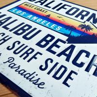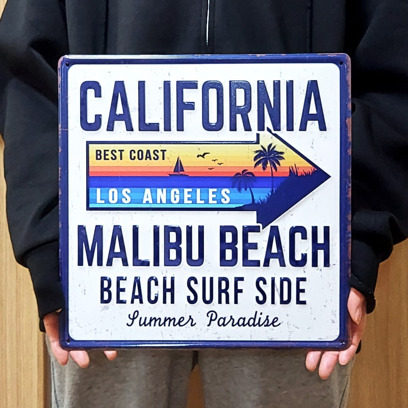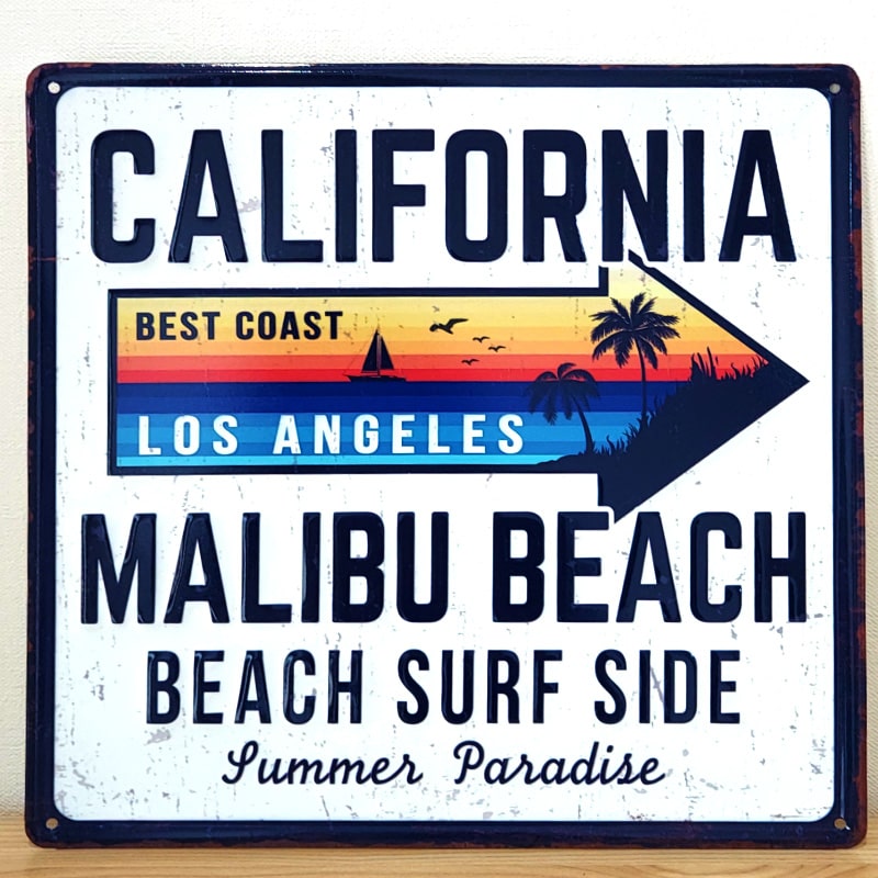 ブリキ看板 ビンテージ マリブビーチ サーフィン アンティーク サーファー ガレージ プレート 壁飾り アメリカン 雑貨