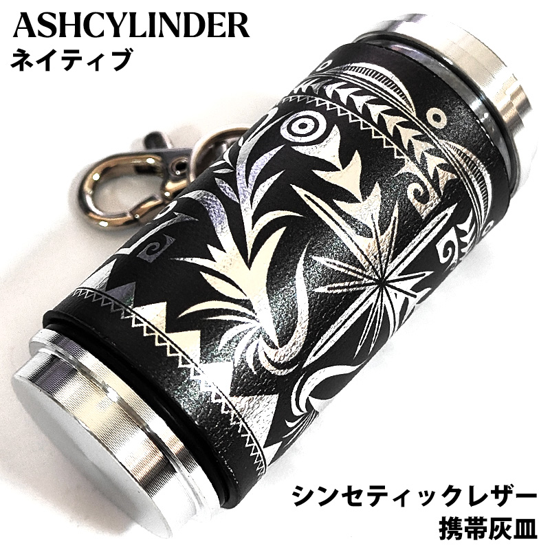 携帯灰皿 シンセティックレザー ネイティブ アイコス 吸い殻入れ 灰皿 ギフト 小物入れ アッシュ・シリンダー ブラック