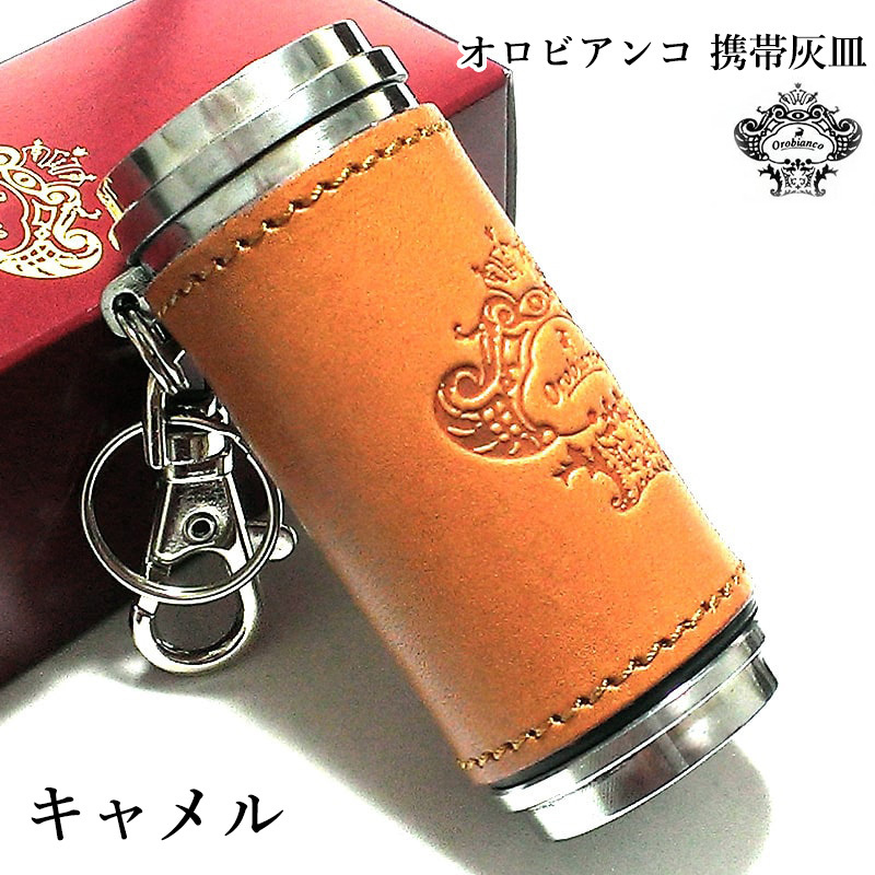 携帯灰皿 オロビアンコ 本革 レザー巻き キャメル おしゃれ アイコス iQOS 吸い殻入れ 灰皿 アッシュ・シリンダー 皮 屋外 Orobianco