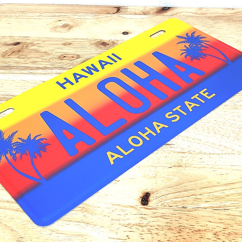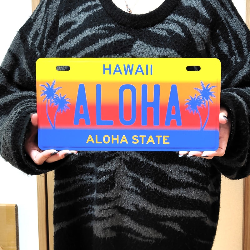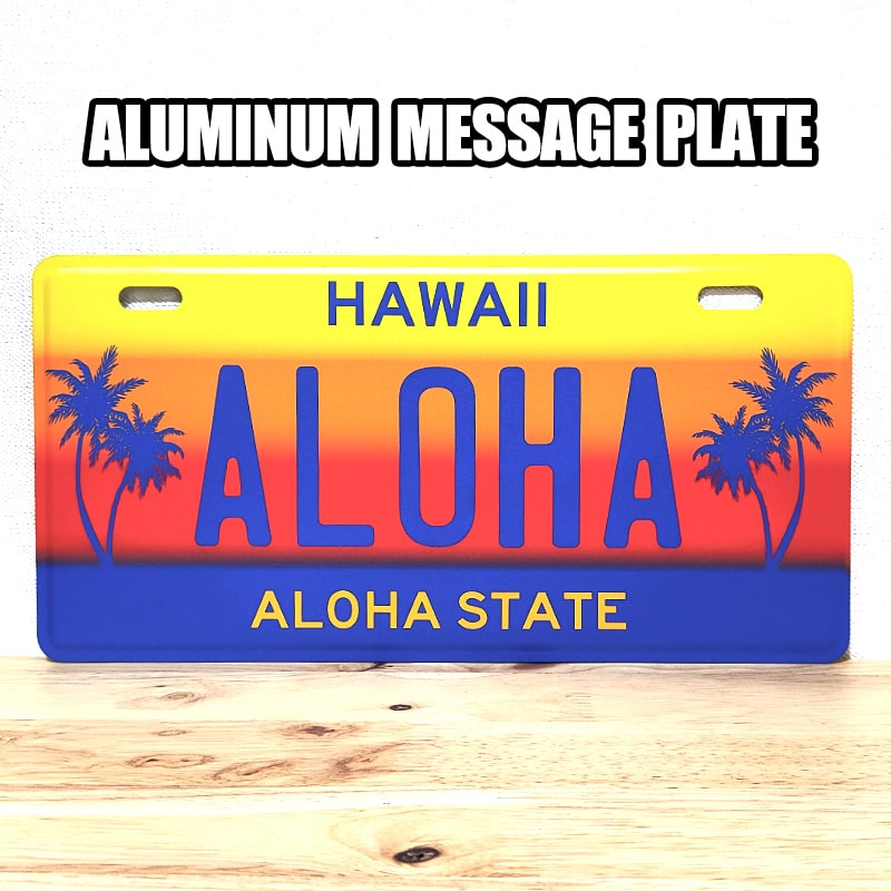 ブリキ看板 メッセージプレート おしゃれ ハワイアン アルミニウム メッセージサイン ALOHA ヤシの木 アメリカン かわいい 壁飾り