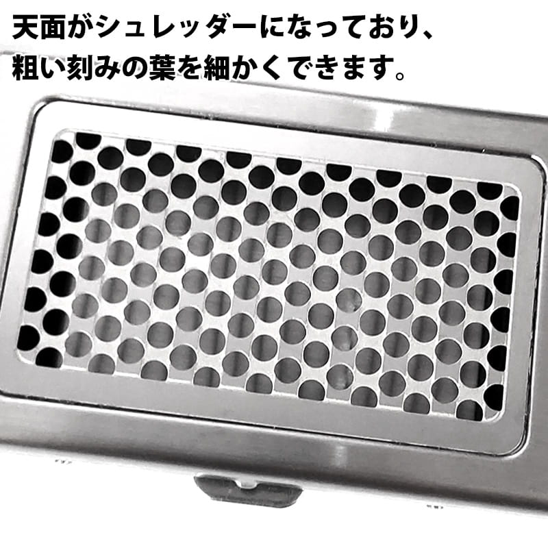 蓋の部分がシュレッダーになっており、パイプたばこや粗い刻みのたばこ葉を細かくできるシュレッダーつきです。