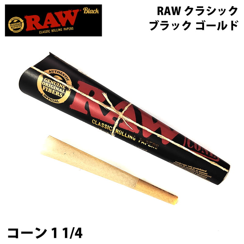 RAW クラシック BG コーン 1 1/4 ブラックゴールド ペーパー 6本入り 手巻きタバコ ロウ シャグ 紙 喫煙具 メンズ CLASSIC