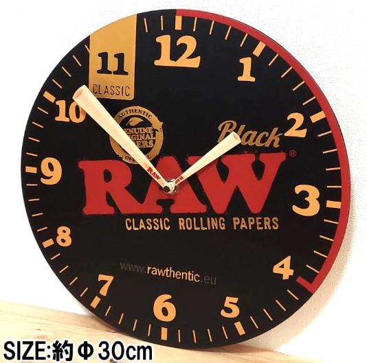 RAW 掛時計 クロック ブラックゴールド インテリア 壁掛け かっこいい ロウ ロゴ アメリカン 雑貨 ディスプレイ おしゃれ 黒