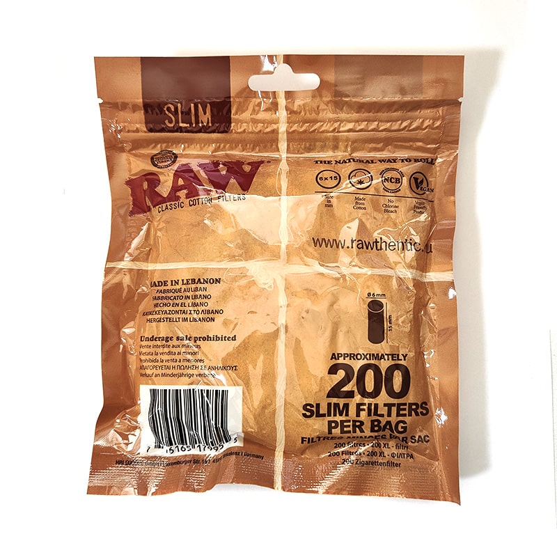 手巻きたばこ用 スリム コットンフィルター RAW 200個入り 綿100% ロウ 喫煙具 タバコ メンズ