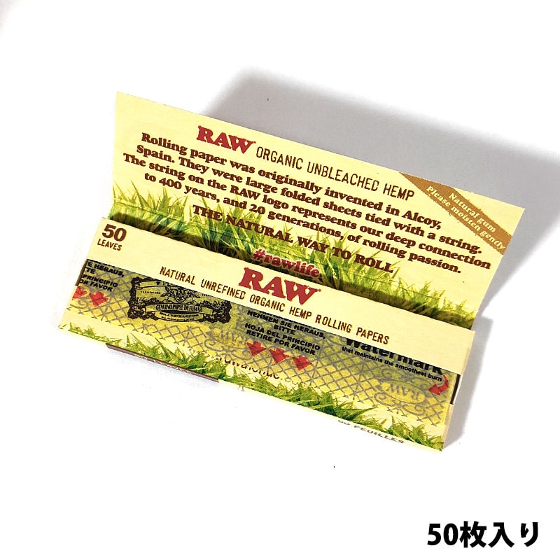 RAW 手巻きたばこ オーガニック ローリングペーパー 1 1/4 50枚入り シャグ ヘンプ100% ロウ 紙 タバコ 喫煙具 メンズ