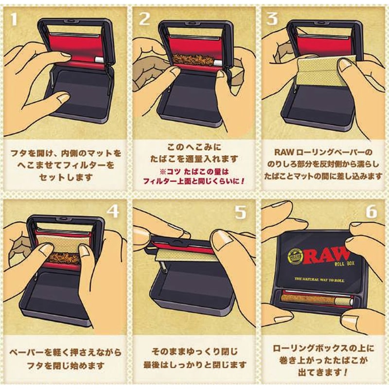 RAW 手巻きたばこ用 ローリングボックス 70mm シングル ペーパー ローラー 巻紙 ロー シガレット タバコ 喫煙具