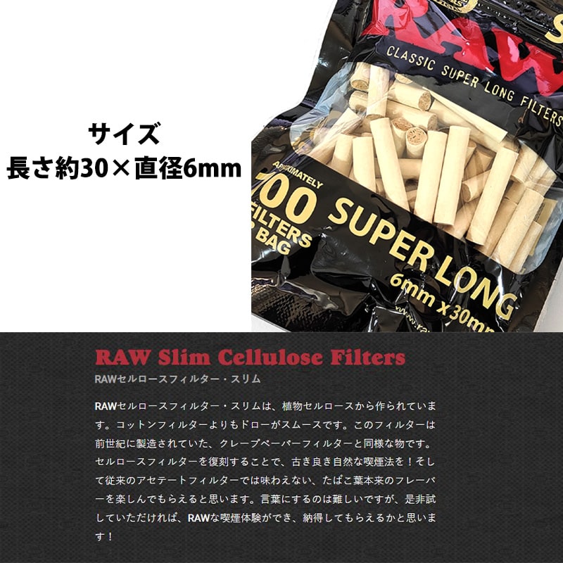 RAW 手巻きたばこ用 スリム SLフィルター セルロース100% スーパーロング 100個入り ロウ 喫煙具 メンズ タバコ