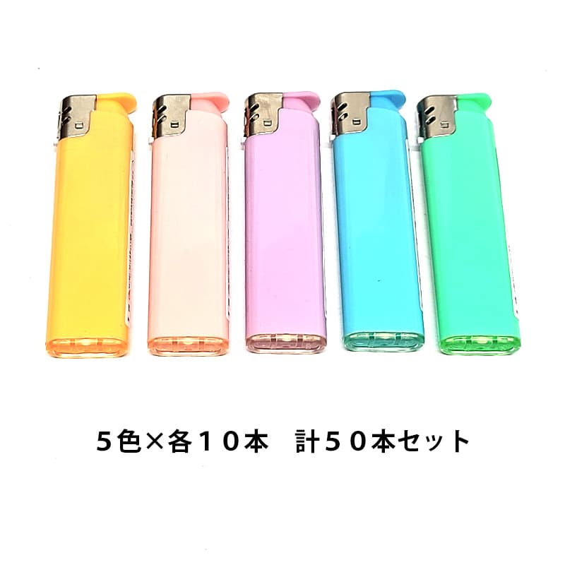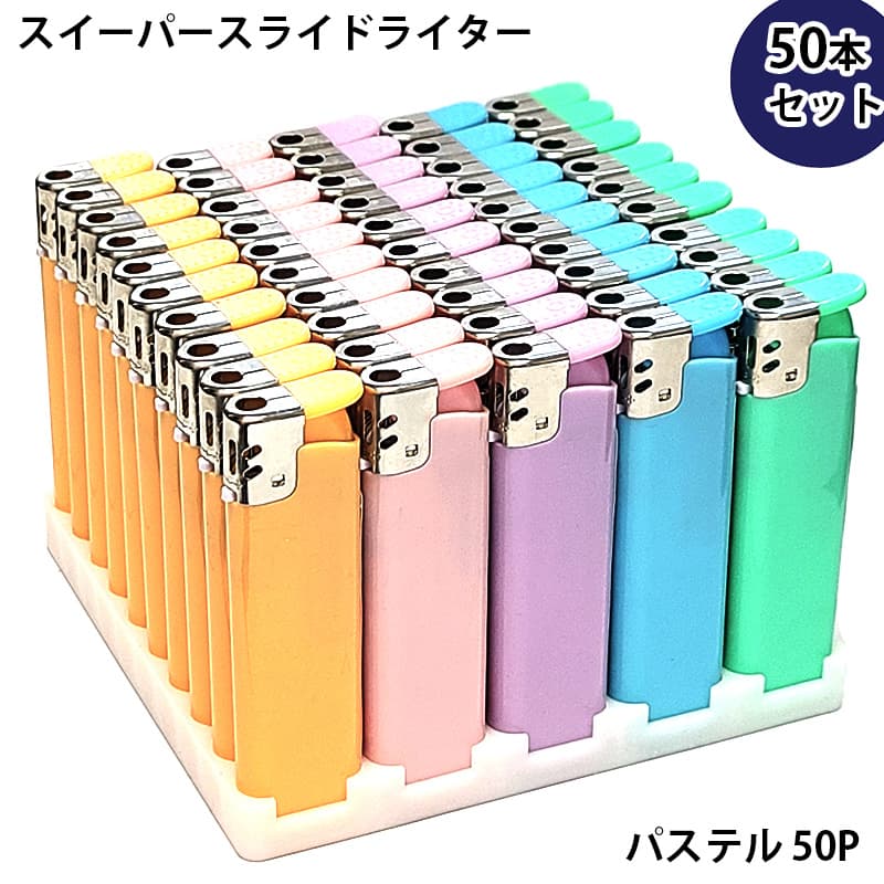電子ガスライター 50本セット スイーパースライドガスライター 使い切り 100円ライター 喫煙具 パステルカラー 5色入り かわいい 使い捨て