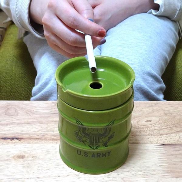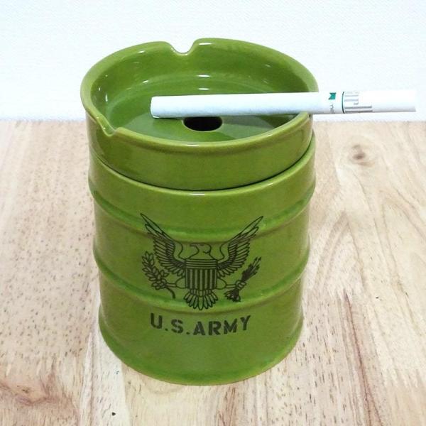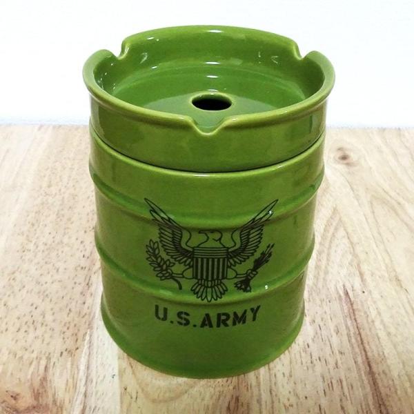 ドラム缶灰皿 喫煙具 ARMY タバコ グリーン 小物入れ アーミー ミリタリー おしゃれ インテリア ペン立て かっこいい アメリカン メンズ