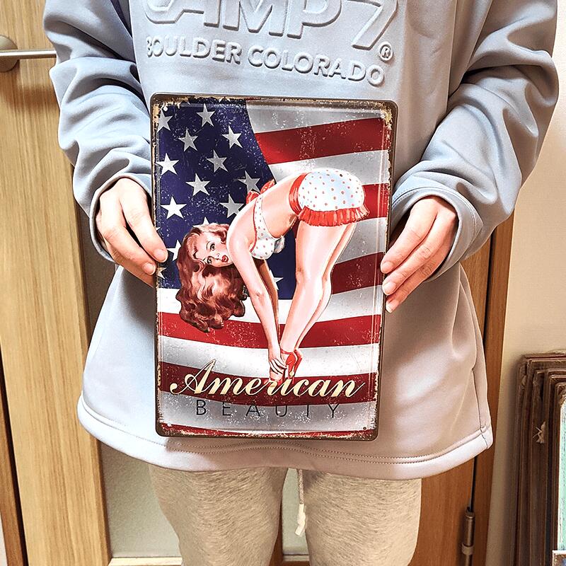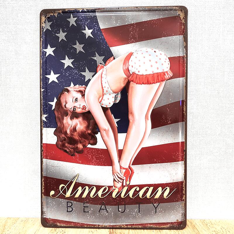 ブリキ看板 アンティーク セクシー おしゃれ American BEAUTY 2 ビンテージ ガレージ かわいい プレート 壁飾り アメリカン 雑貨