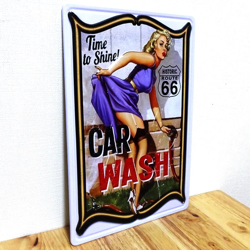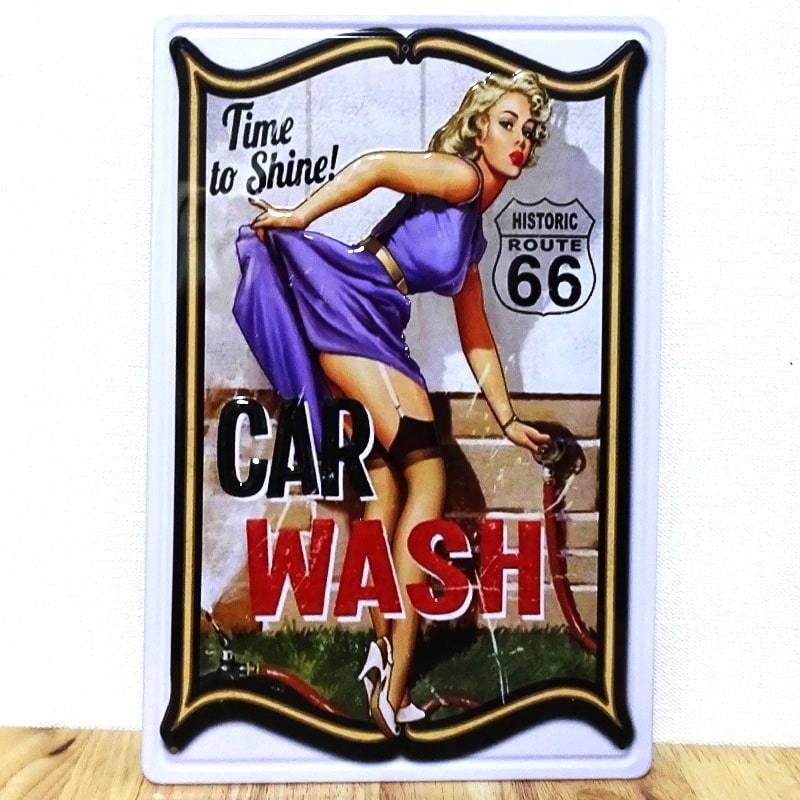 ブリキ看板 セクシー かわいい CAR WASH ルート66 アンティーク ガレージ 可愛い ヴィンテージ プレート おしゃれ インテリア 店舗