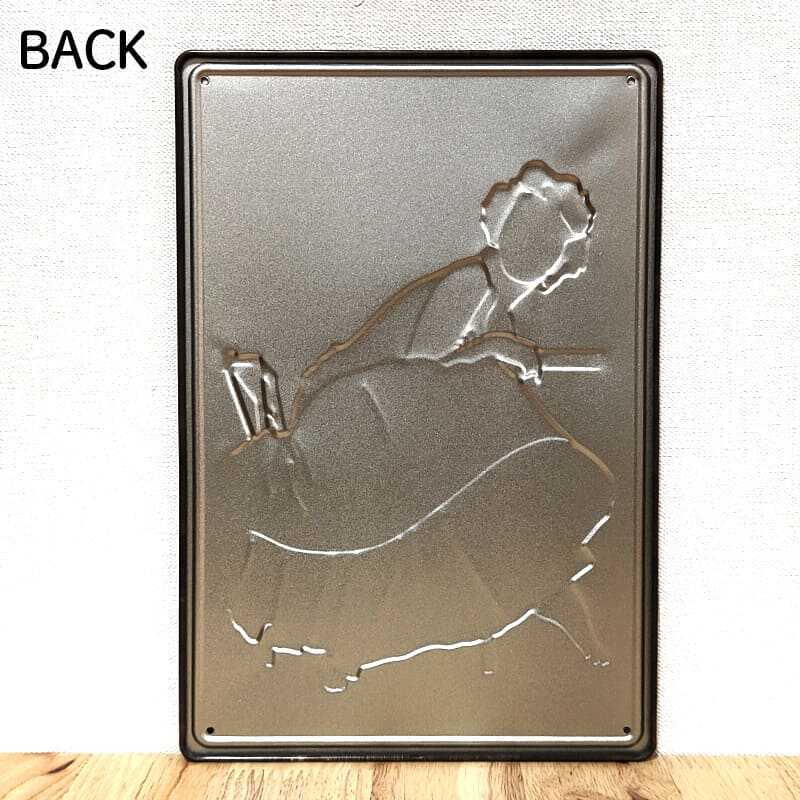 シックな雰囲気のレトロでおしゃれなブリキ看板です。