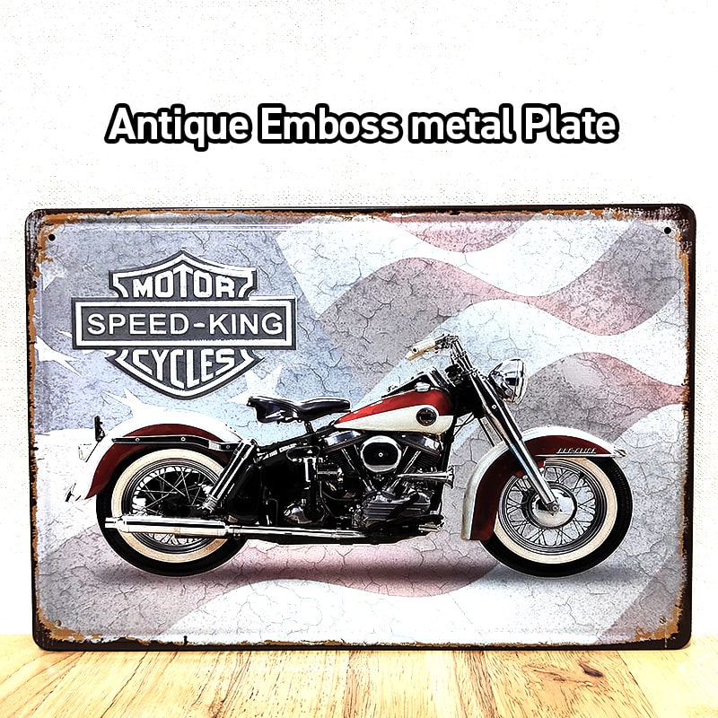 ブリキ看板 バイク ヴィンテージ レトロ アンティーク SPEED KING FLAG アメリカン 雑貨 メタルエンボスプレート ビンテージ 壁飾り