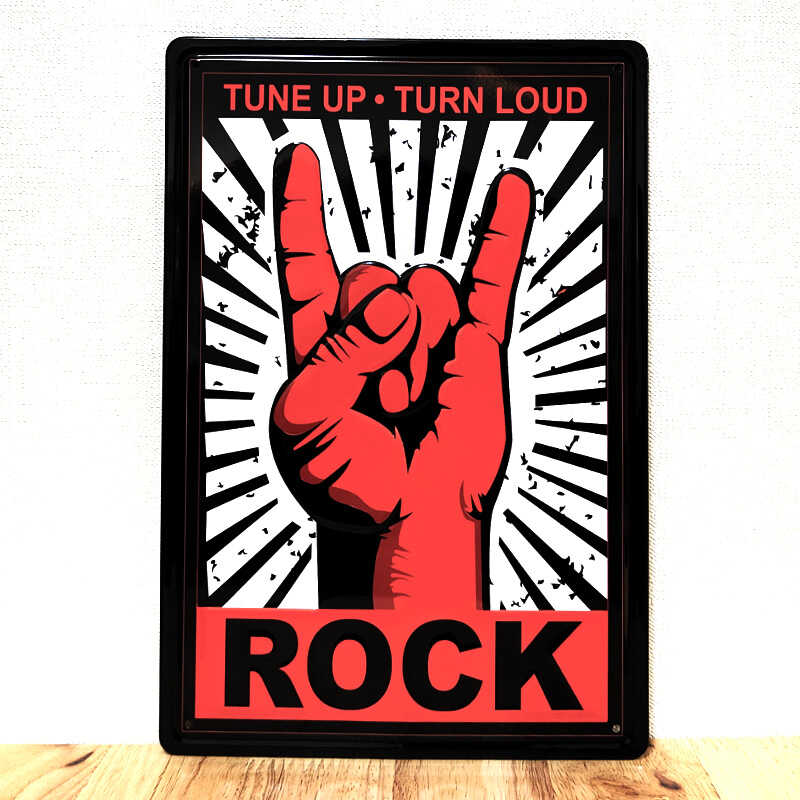 ブリキ看板 ロック かっこいい 壁飾り アンティーク メタルエンボスプレート ROCK ワイルド メロイック・サイン 雑貨 アメリカン バー