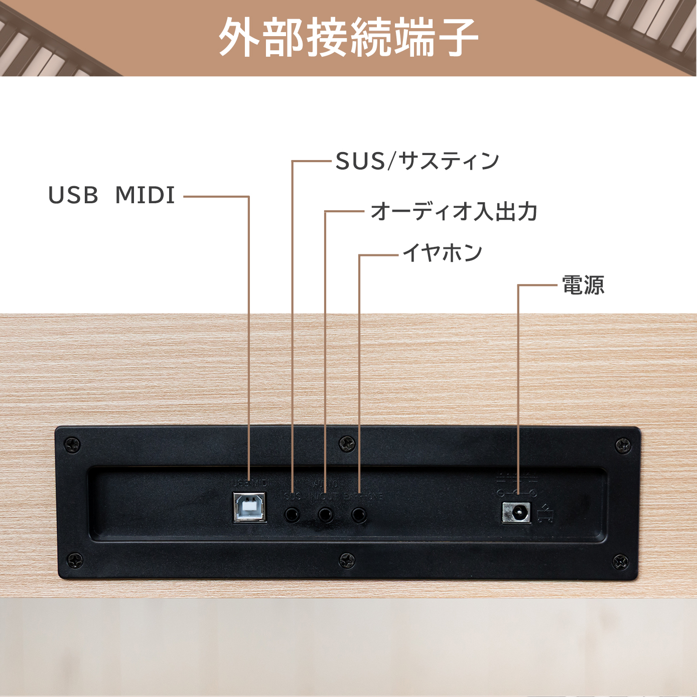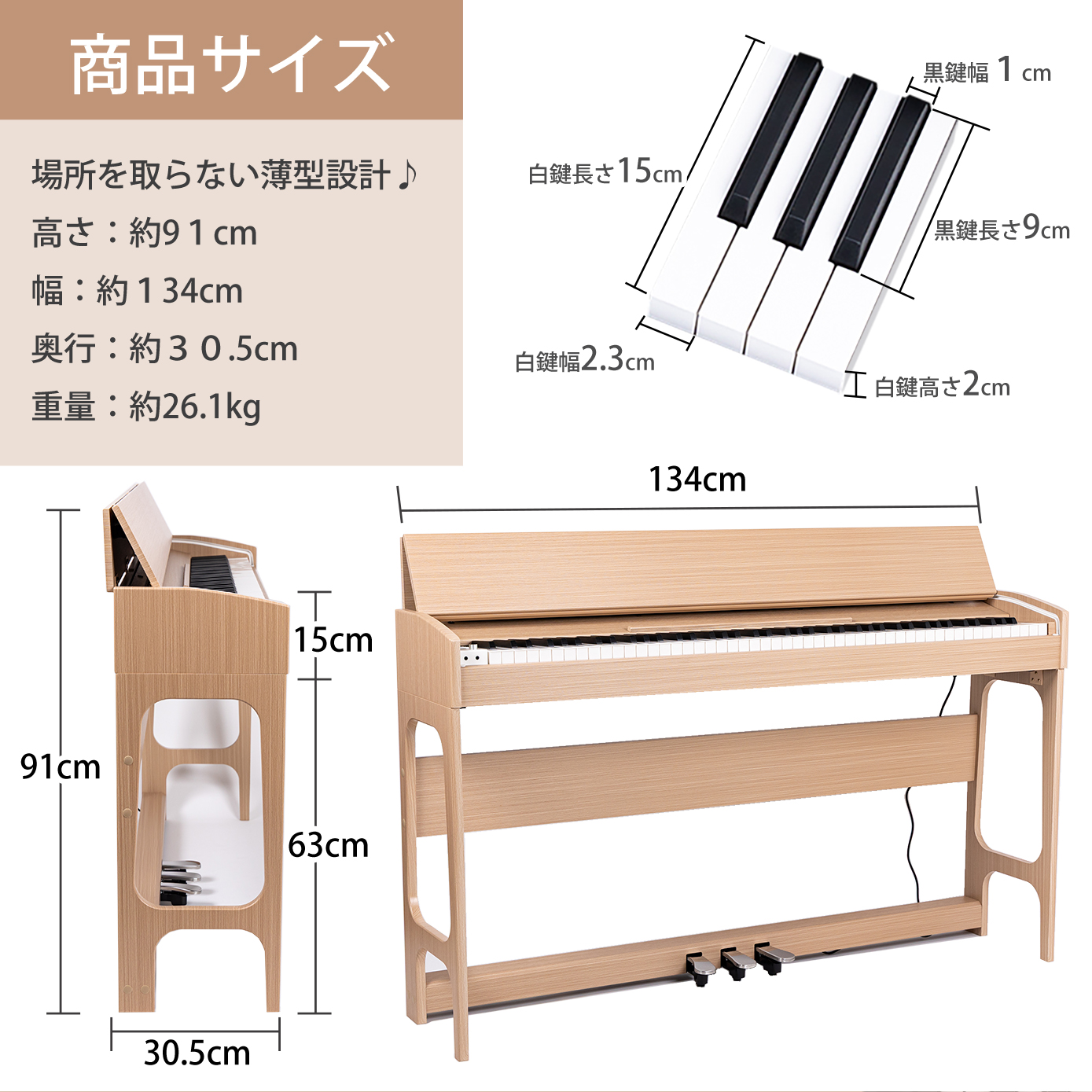 【スライドカバー】電子ピアノ 88鍵盤 ハンマーアクション鍵盤 ピアノタッチ 木製スタンド 3本ペダル ヘッドホン3か所 日本語表示 キーボード ピアノ