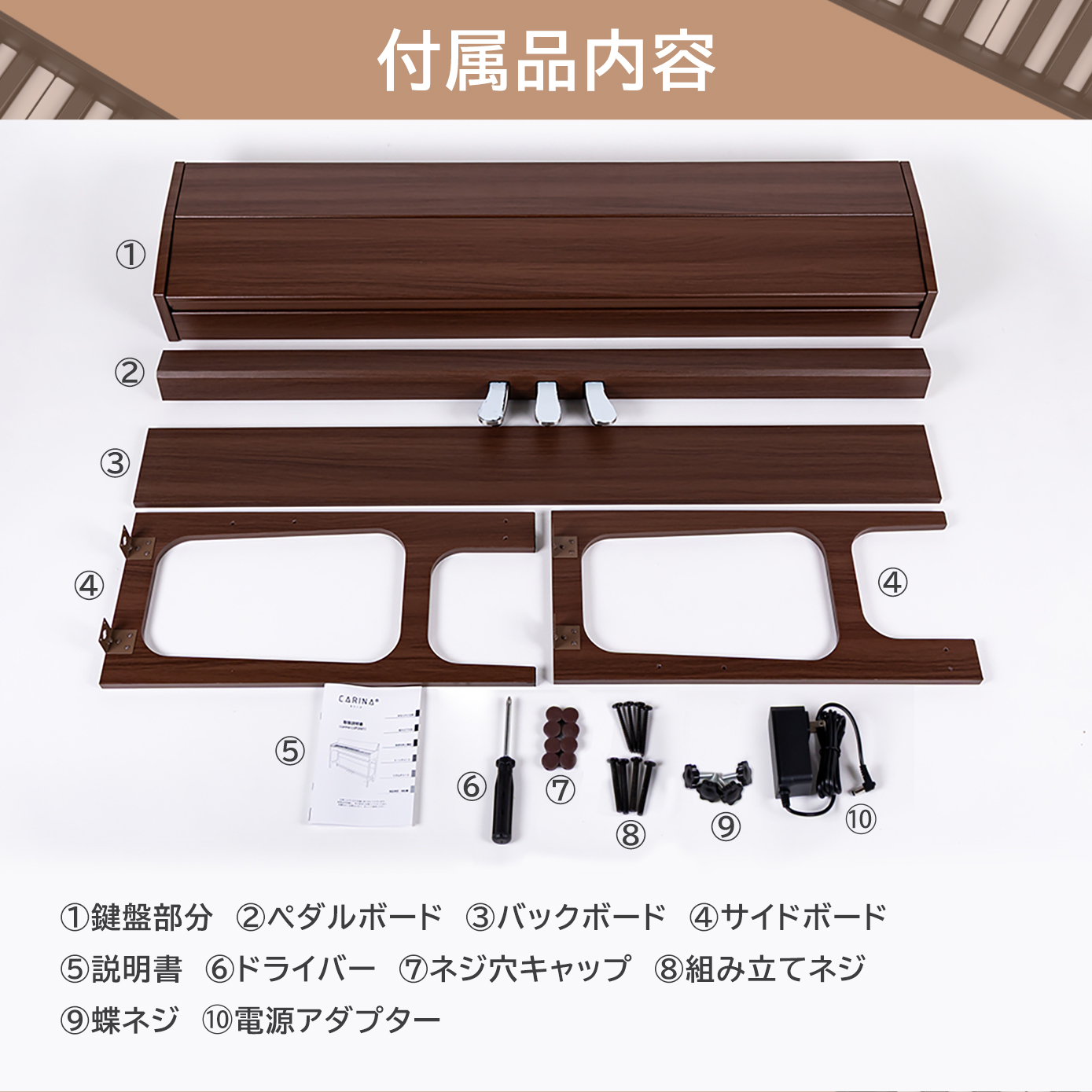 【内容】ピアノ本体、日電源アダプター、説明書、ドライバー
