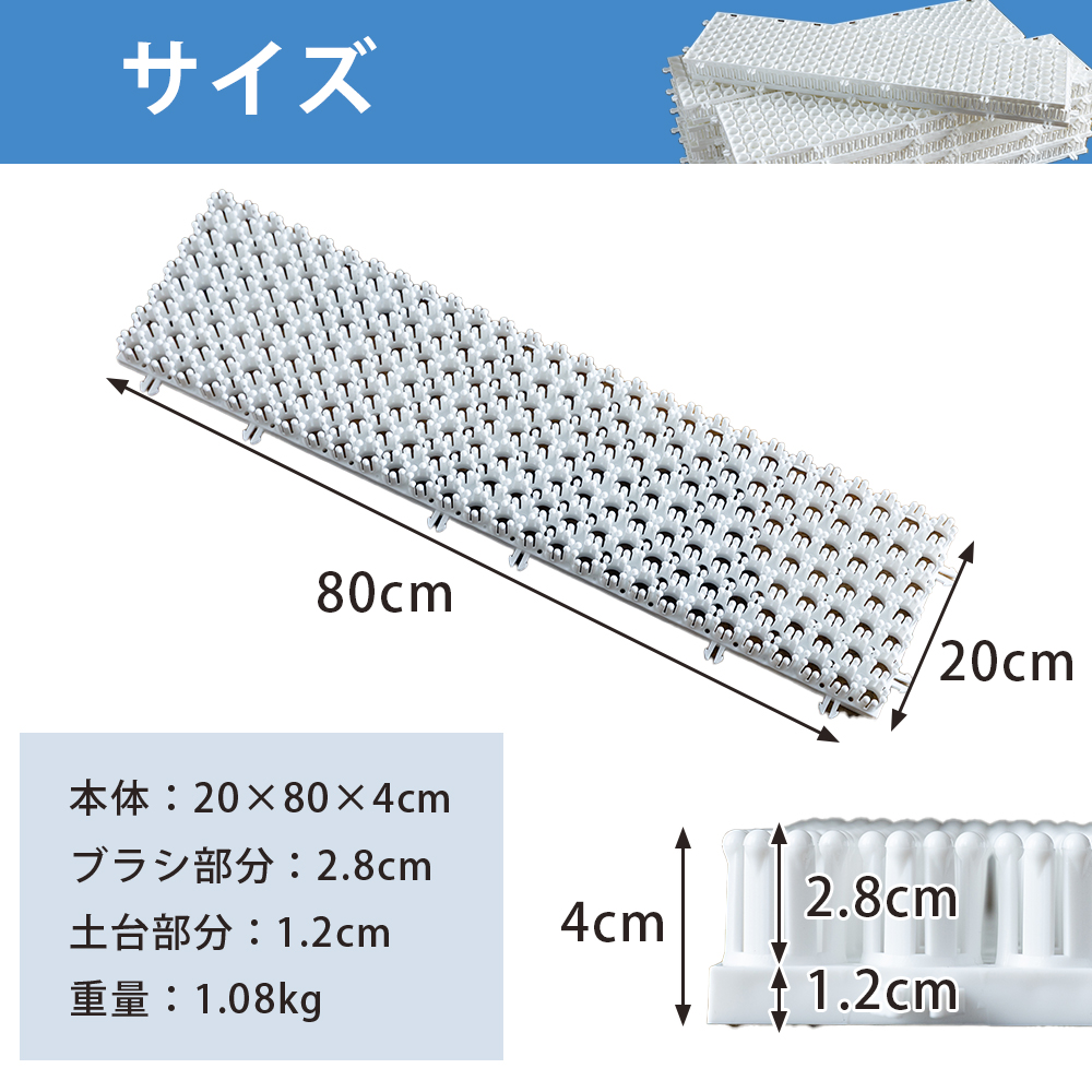 【サイズ】1枚:20cm×80cm×4cm ブラシ部分高さ:2.8cm 土台部分高さ:1.2cm