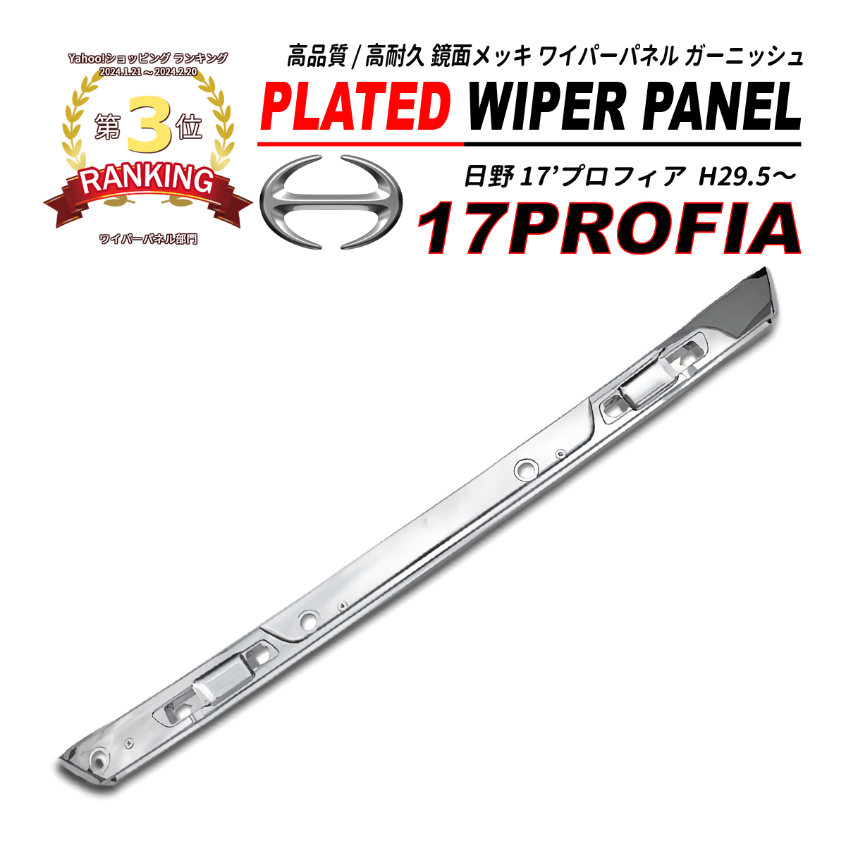 日野 17 プロフィア メッキ ワイパーパネル 純正交換 クロームメッキ ABS製 2017(H29.5)〜 爆買