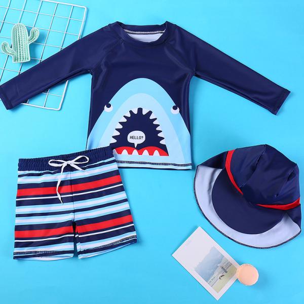 水着 キッズ 男の子 セパレート 長袖ラッシュガード パンツ キャップ 3点セット子供 ジュニア 水着 男児 サメ