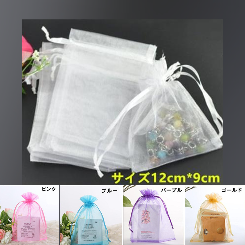 オーガンジー 無地 巾着袋 12*9cm 100枚入り ラッピング プレゼント 包装 シースルー 小分け バレンタイン クリスマス