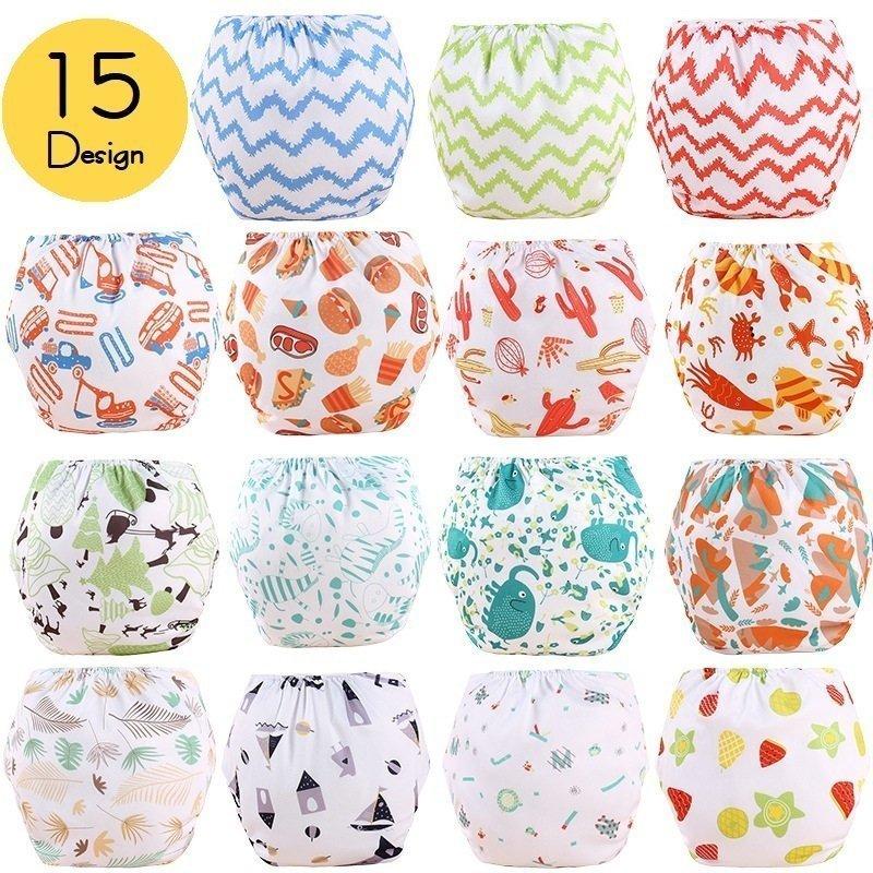 海の生き物やギザギザ模様などかわいいプリント入りのベビー用おむつカバーです。