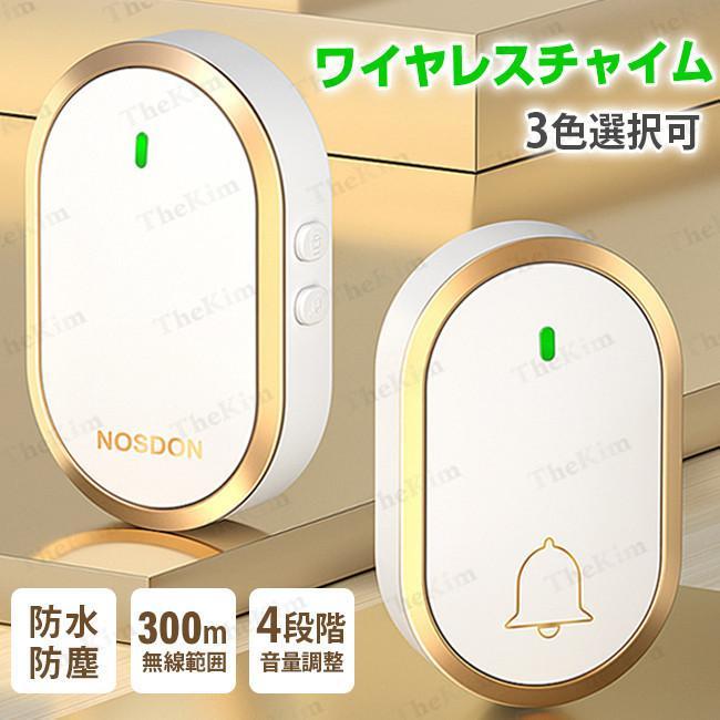 ワイヤレスチャイム 玄関チャイム ドアベル 300M無線範囲 呼び鈴 呼び出しチャイム 介護 音量調節 ワイヤレス 防水 防塵 省エネ 飲食店 浴室
