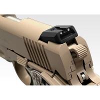 2000年初頭、アメリカ海兵隊はMEUピストルに代わる新型ハンドガンを制式採用しました。それが、コルト社が手がけた「M45A1 CQBピストル」です。各部には命中精度を追求するカスタムガンなみの加工を施し、新たにレイル一体型フレームやG10素材の特徴的な積層グリップ、スライドには間隔が広いセレーションを採用。また、大部分の外装をタンカラーで仕上げるなど、MEUピストルの後継としてふさわしいモデルとなっています。