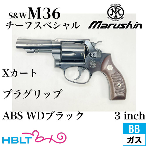 ・S&W M36 チーフスペシャル Xカート 木目調プラサービスグリップ HW ブラック 3インチ(ガスガン リボルバー 本体 6mm)